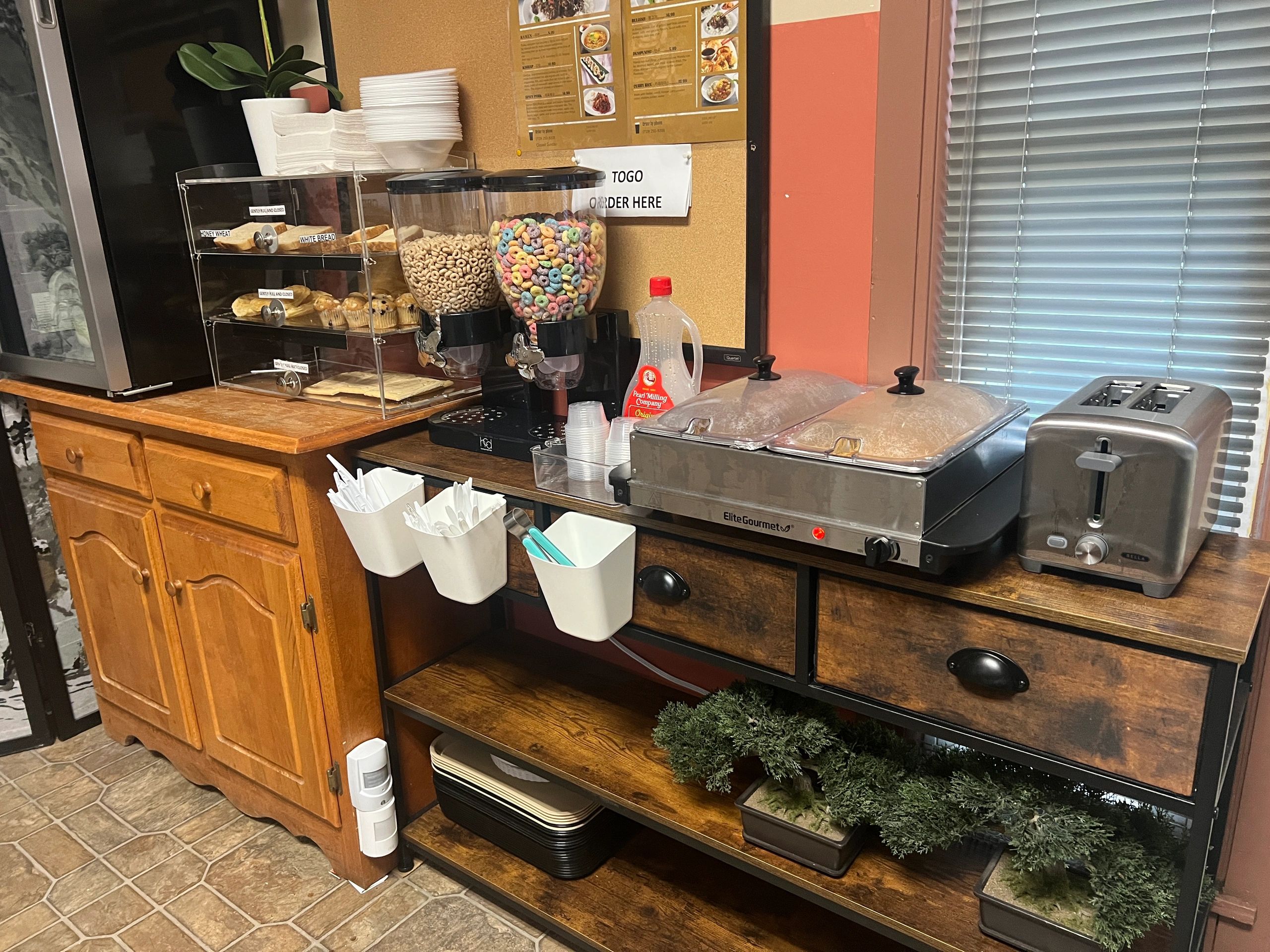 Enjoy a complimentary continental breakfast of pastries, cereal, and a variety of hot drinks. The lounge is available in the afternoon for guests to relax with a book, tea and coffee.